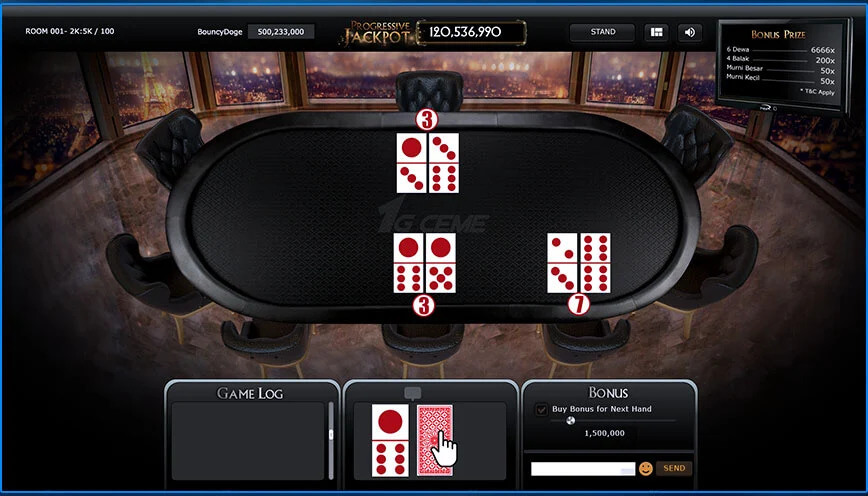 Taruhan pemain yaitu : Kecil sebesar Rp 100.000 dan mendapatkan kei 10%. Artinya kalau member menang, member mendapatkan hadiah tambahan 10% dari nilai taruhan.